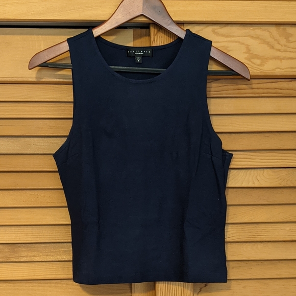 Excellent wardrobe staple - it looks great with boyfriend jeans AND with a blazer. Soft, stretchy material with slight darts at the chest to flatter. Deep navy blue.