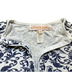 Very soft, footed sleeper from Simple Baby. All over bird pattern; full front zipper for easy changes.