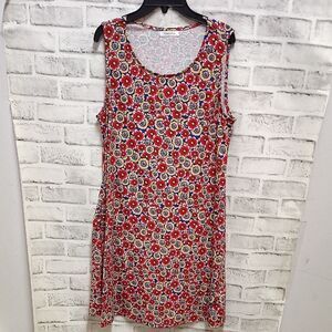 Vibrant floral pattern. Sleeveless design. Perfect for casual outings.