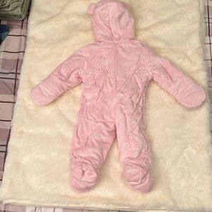 With a lined hood and cute little ears, this cozy 1-piece is perfect for the colder months. With a super soft fabric and warm lining, this is the perfect piece for your young one to snuggle up in. A full zip front makes this one easy to layer over any outfit.
