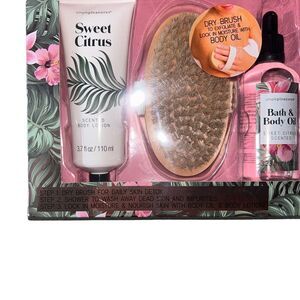 SimplePleasures Dry Brush Beauty Set Sweet Citrus Scent, Brush, Lotion, Oil, Gel