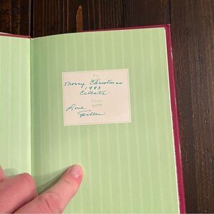 This book contains 101 thoughts and recipes for savoring the little things in life. The item had been a gift in 1983. (see photo) There is some glue residue on the dust cover but overall is in very good condition. It is 6” x 7”.