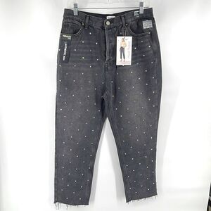 Simple Society distressed super high rise button fly raw hem jeans NEW NWT 13 31