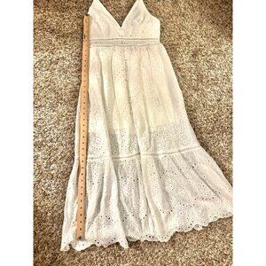 Simplee Cotton Sleeveless Resort Eyelet Lace V-Neck, Adj. Straps Midi Dress XL