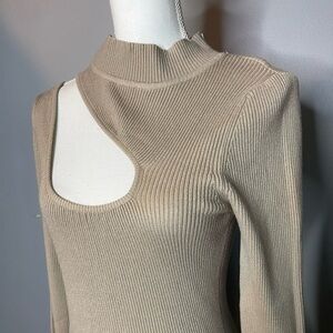 Simplee Cut Out Bodycon Sweater Dress NWT Medium Beige