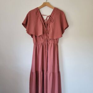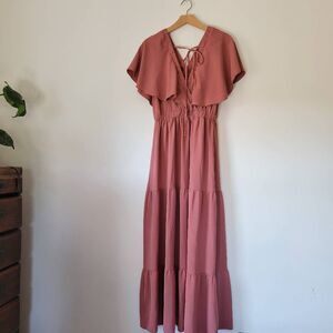 Simplee Dusty Rose Flutter Sleeve Tiered Maxi Dress Women’s Size S
