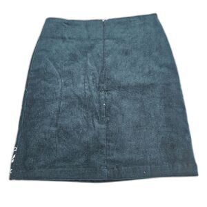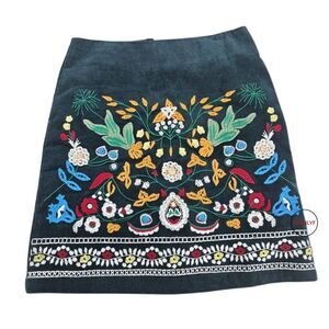 Simplee Floral Embroidered Corduroy Straight Skirt Green Small