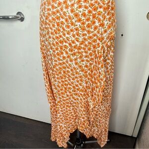 Embrace vibrant style with this floral orange skirt. Perfect for any occasion, it adds a pop of color to your wardrobe.