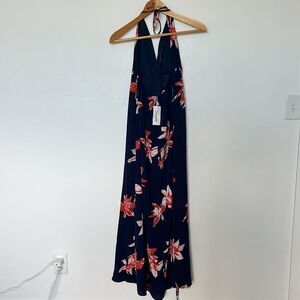 Simplee Halter Maxi Dress Navy Blue Floral NWT Size Small