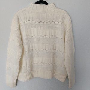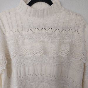 Simplee Ivory Colored Lace Pointelle Ribbed Knit Mock Neck Sweater NWOT
