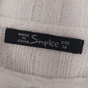 Simplee, ivory colored, lace, pointelle, and ribbed knit, long sleeved, mock neck sweater. Excellent condtion. NWOT.