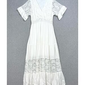 Simplee V-Neck Lace Maxi Dress. Women's size Large. Great condition. No apparent flaws. Photos are considered part of description. Wonderful for beachy, bohemian or western wedding, or a resort vacation dress.
