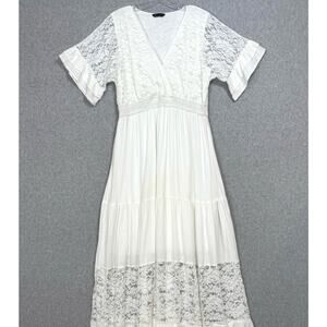 Simplee Lace Maxi Dress Size L SS V Neck Lined Destination Beach Wedding Bridal