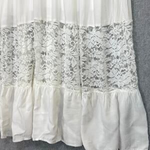 - Sheer lace panel at hem, with ruffled bottom