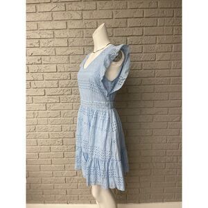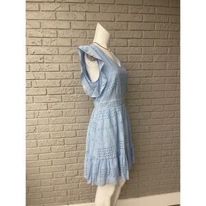 Simplee Light Blue Eyelet Ruffle Hem Dress Size M NWT