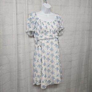 Simplee Mini Dress White Blue Floral Y2K Cottage Coquette Milkmaid L NWT