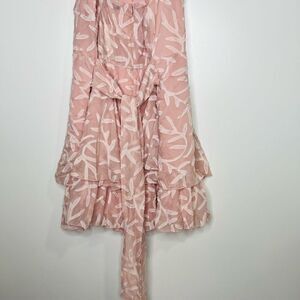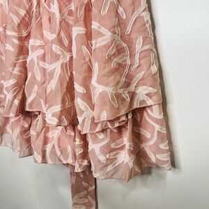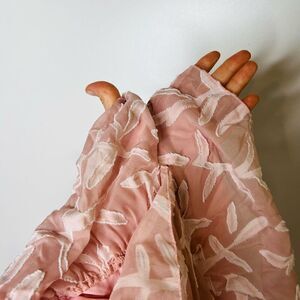 Gorgeous pink sheer fabric with textured what looks like pieces of sea coral. Layered and flowing.
