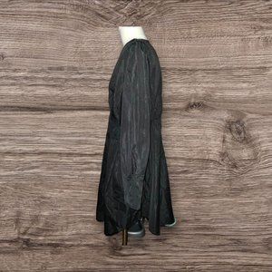 Elevate your style with this stunning black A-line dress from Simplee Plus. The dress features a flattering V-neckline, long sleeves and a high waistline that creates a feminine and chic look. The dress is made of high-quality polyester material that ensures both durability and comfort, making it perfect for any occasion. The dress comes in size 1XL and is adorned with charming accents that can be seen in the photos. It has a unique fit and flare style that creates a timeless silhouette. This dress is suitable for a range of occasions, including casual outings, workwear, parties, and formal events. With its elegant collarless design, asymmetric hemline, and beautifully woven fabric, this dress is a must-have for any wardrobe.
