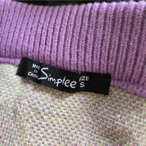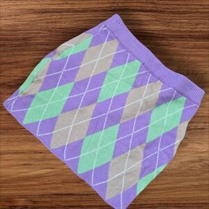 Simplee Purple and Green Stretch Argyle Knit Mini Skirt