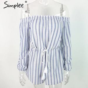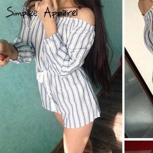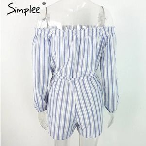 ⤵️🆕 Simplee Sexy off shoulder blue striped jumpsuit