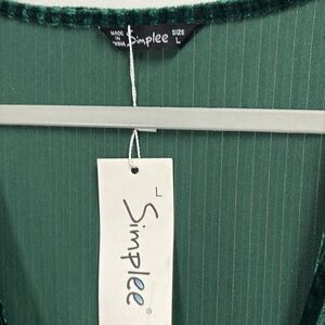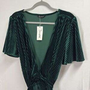 Simplee Velvet Ribbed Wrap Tie Maxi Dress Emerald Green Size Large NWT