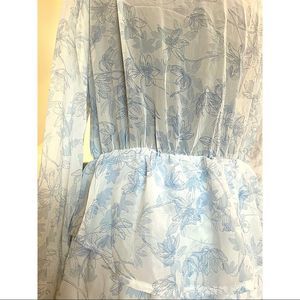 Simplee White & Blue Floral Ruffle Bishop Sleeve Romantic Spring Dress