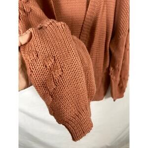 Simplee Women Open Front Cardigan Balloon Sleeve Rust Orange Small