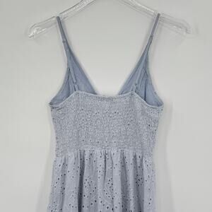 Simplee blue eyelet lace dress cami button front tiered ruffle scalloped hem S