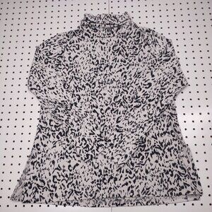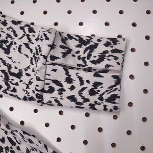 Blouse in good condition with little, has an abstract print to it, slits at cuffs.