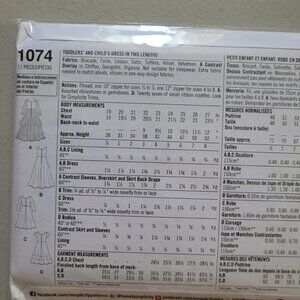 Simplicity 1074 Girls Short or Long Dresses Sizes 4, 5, 6. 7, 8