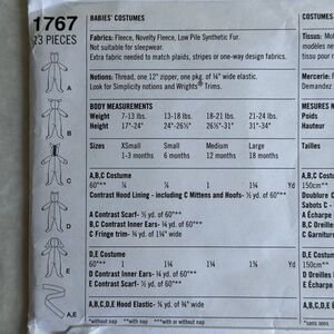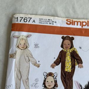 Simplicity 1767 Costume Sewing Pattern Cat Rabbit Zebra Bear Baby Childs XS-L UC