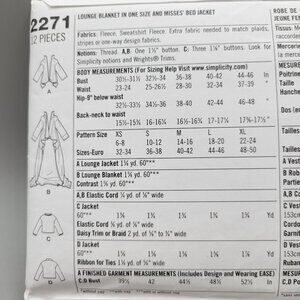Simplicity 2271 Sewing Pattern For Lounge Blanket Jacket and Bed Jacket