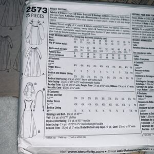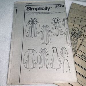 Simplicity 2573 sz U5 16-24 Bust 38-46 Renaissance Gown Costume New Bust 38-46