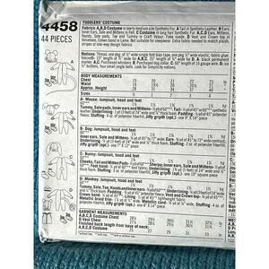 Simplicity 4458 Sewing pattern Toddler mouse bunny monkey dog size 1/2 1 2 3 4