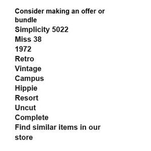 Simplicity 5022 Pattern Top Tie Miss 38 Uncut Campus Hippie Vintage Resort