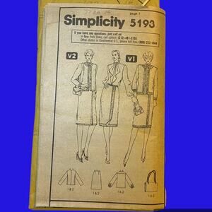 Simplicity 5193 Adolfo Pattern Skirt Top Bag Jacket Miss 16 Uncut Slim Fit Lined