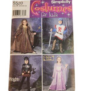 Simplicity 5520 & Butterick B4319 Kids Halloween Costume Patterns Multiple Sizes