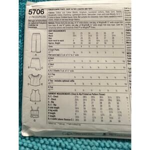 Simplicity 5706 pattern girls blouse capri pants skirt tank top size 5 6 7 8