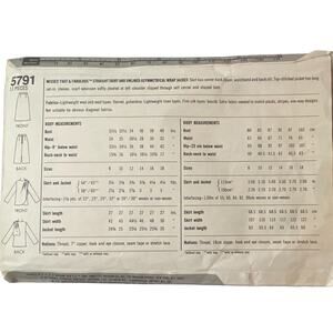 Simplicity 5791 Skirt Jacket Pattern Miss 8-18 Tulip Hem Unlined Straight Wrap