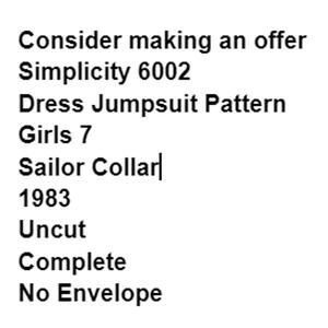 Simplicity 6002 Pattern Sundress Jumpsuit Girl 7 Sailor Vacation Sporty