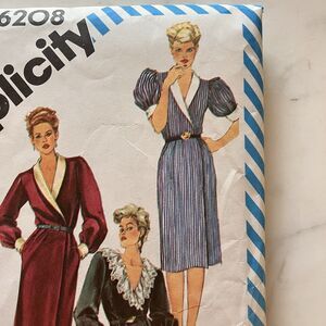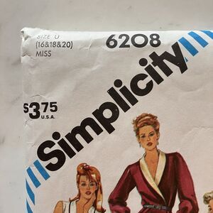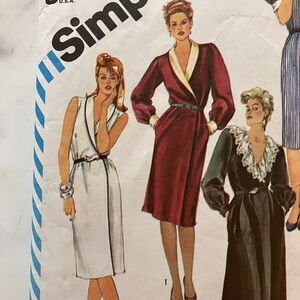 Simplicity 6208 V Neck Wrap Dress Pockets Collar Misses Size 16, 18 & 20 Pattern Cut Used good condition. General instructions included