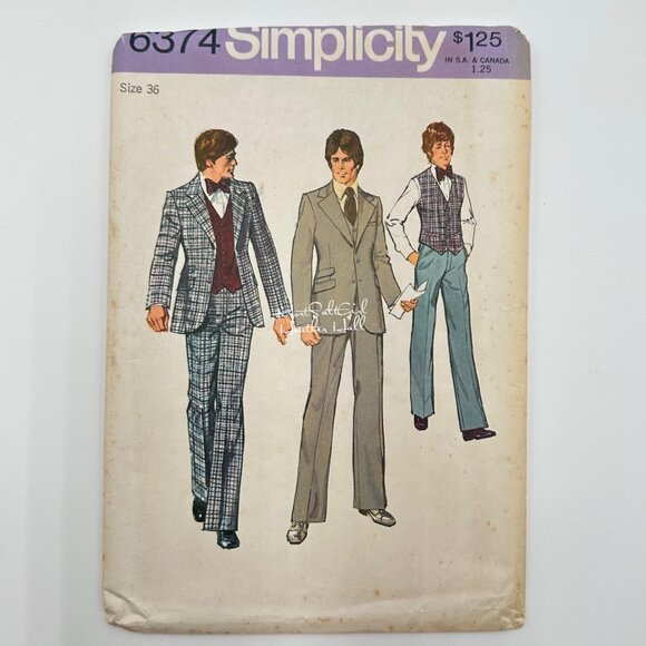 Simplicity 6374 UNCUT Mens Suit With Vest Sewing Pattern Size 36 Vintage 1974