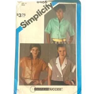 Simplicity 6466 Pattern Top Miss 8 Uncut Vintage Loose Cropped Double Breasted