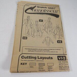 Simplicity 6667 Clothing Pattern Mens Single & Double Breasted Lined Suit Jacket