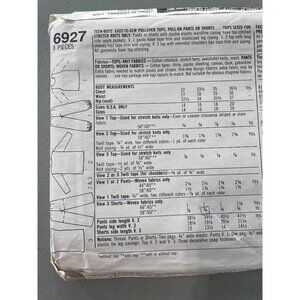 This vintage Simplicity sewing pattern 6927 provides instructions for creating teen boys’ pullover tops, pants, and shorts. Includes 9 uncut pattern pieces. Vintage packaging shows some minor wear.