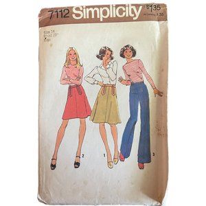 Simplicity 7112 Vintage 70s Flared Pant, Flared Skirt, & Top size 14