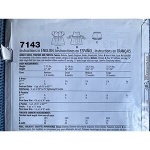 Simplicity 7143 Sewing pattern Baby dress jumper bloomers puff sleeve size NB-L