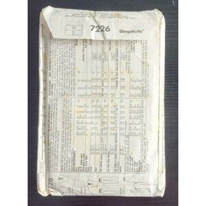 This is a vintage sewing pattern from Simplicity, number 7226. It includes patterns for a jacket, top, pants, and skirt in coordinating styles, all in a size 14 for adult women. The pattern is uncut and includes features that are out of print, making it a rare find for collectors and enthusiasts. The pattern is from the 1980s and was made in the United States. It is a great addition to any sewing collection or a fun project for those who enjoy crafting. The brand, Simplicity, is well-known for creating high-quality patterns that are easy to follow, even for beginners. Get creative and make your own unique clothing with this Simplicity 7226 pattern.