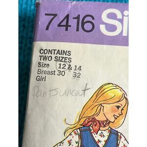 Simplicity 7416 Sewing pattern girls vest wide leg pant and aline skirt size 12