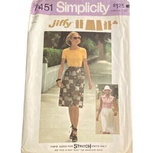 Simplicity 7451 Top Skirt Pattern 1976 Uncut Complete Factory Fold